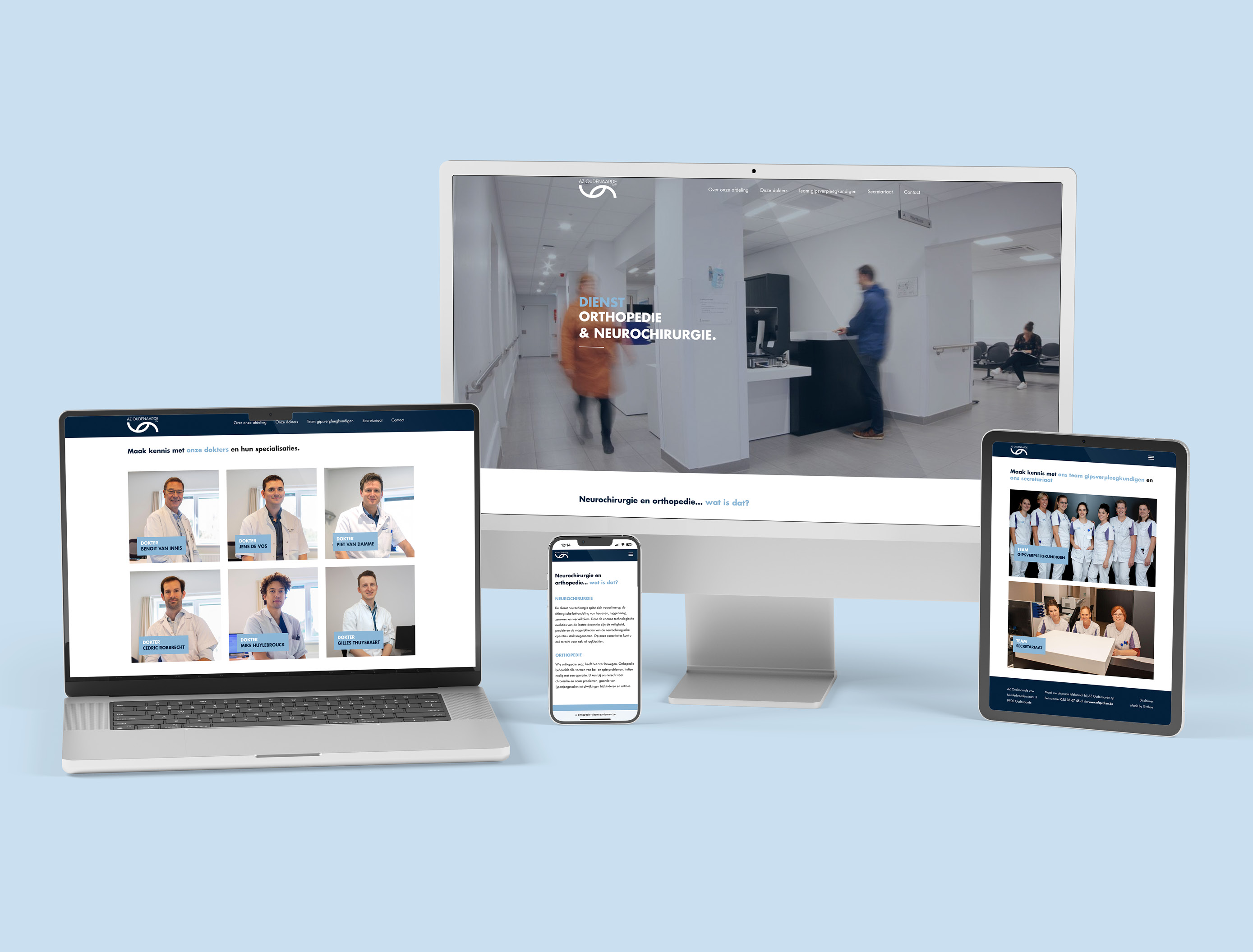 Ook de afdeling Orthopedie en Neurochirurgie schakelde Grafica in om hun specialisatie extra in de kijker te zetten. We zorgden voor professionele portretfoto’s en integreren deze in onze designs voor hun eigen website en een bijhorende folder waarin alle artsen werden voorgesteld.