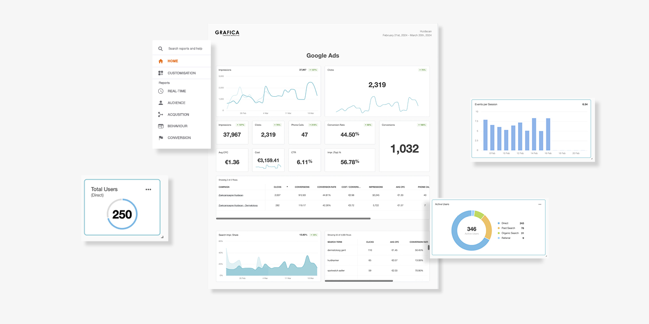 Griet Voet is de drijvende kracht achter de groei van Clinique Dermatologie en schakelde Grafica in om haar marketingambities waar te maken. We ontwikkelden een gebruiksvriendelijke website met een intuïtief CMS, zodat het team zelf eenvoudig aanpassingen kan doorvoeren. Voor social media zorgden we voor een sterke basis, zodat het interne team zelfstandig verder kon werken. Daarnaast lanceerden we een gerichte Google-campagne om maximaal in te zetten op leadgeneratie.