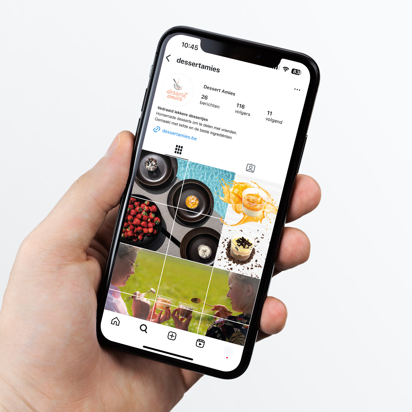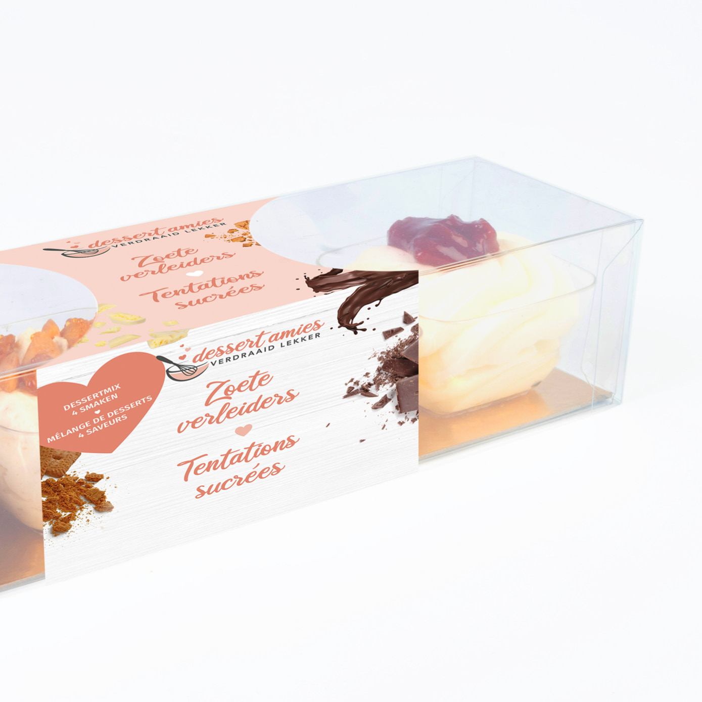 Deze samenwerking begon met de creatie van een sterke naam. Zodra Dessert Amies geboren was, ging Grafica aan de slag met het ontwerpen van een logo en het bepalen van de uitstraling voor verpakkingen en POS-materiaal.