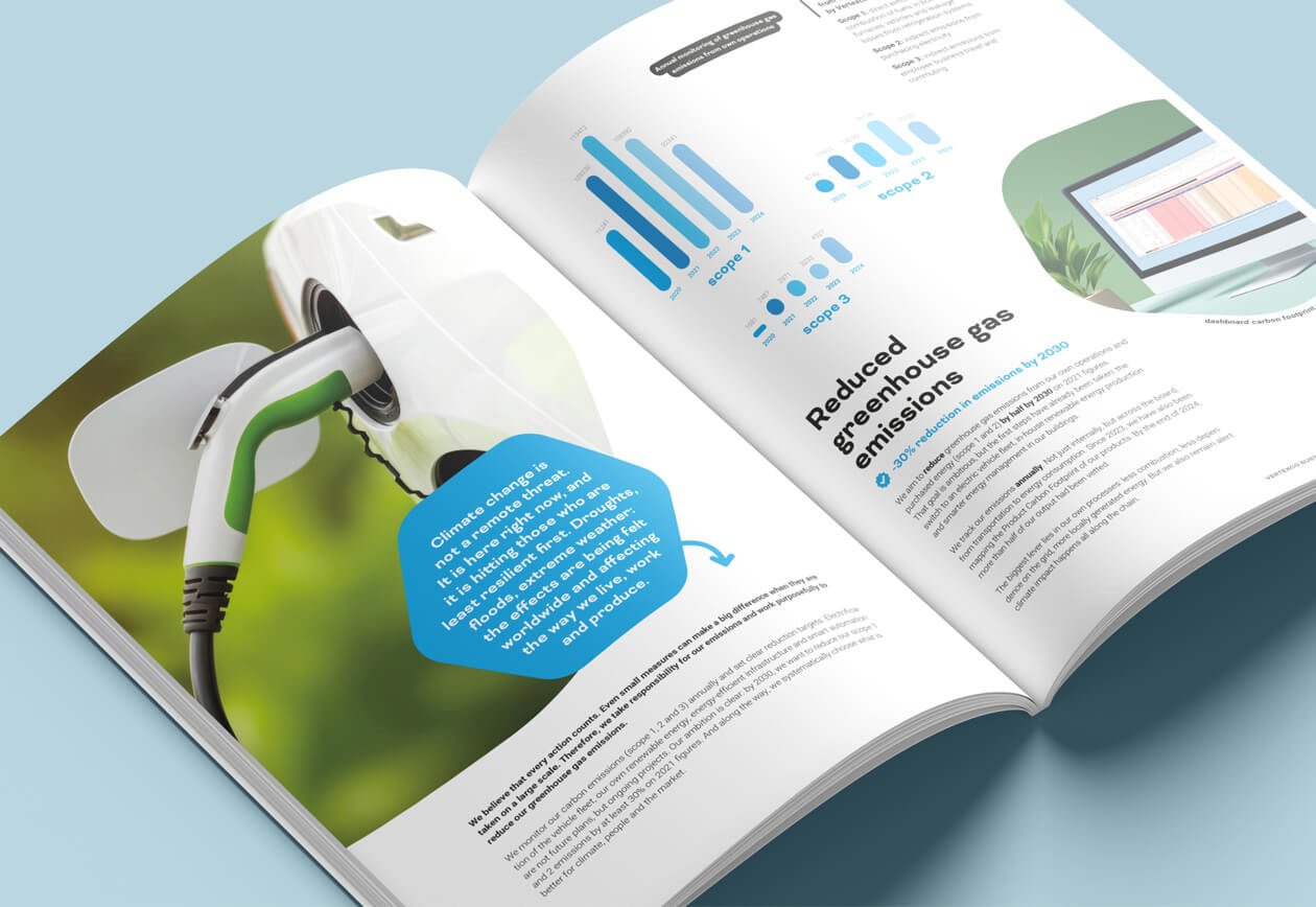 Advies nodig? Grafica ontzorgt u volledig en is een sterk betrouwbare partner voor duurzaamheidsrapporten die professioneel en op maat zijn.